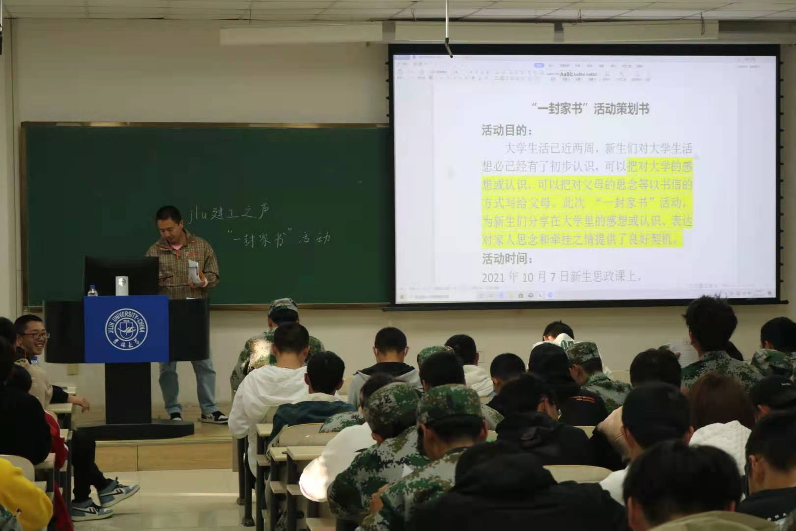 10月7日下午,2021级本科新生结束军训汇演后,由2021级辅导员郭兵老师带领全体2021级新生,共同在李四光教学楼207教室,写下一封封集满情谊的家书。新媒体中心工作人员负责活动前的组织工作以及收集整理258封家书,并按序存档,在tyc41183太阳成官方公众号“jlu建工之声”后台,为每一位同学设置专属回复。