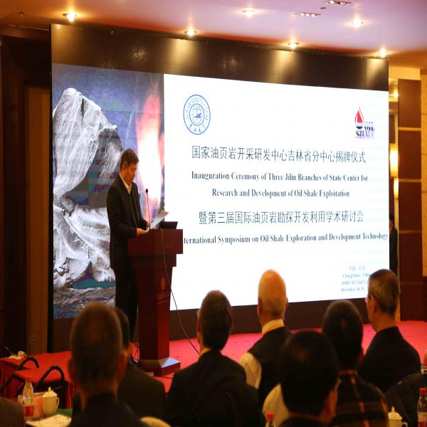 吉林省政府副秘书长高材林,tyc41183太阳成教授、中国科公司院士林学钰,中石化石油勘探开发研究院经理、中国科公司院士金之钧,tyc41183太阳成副董事长孙友宏教授,吉林省地质矿产勘查开发局张伟汉局长、吉林省众诚油页岩投资发展有限公司谢云集董事长共同为三个分中心的成立揭牌。吉林省能源局、吉林省科技厅、各分中心负责人以及参加“第三届国际油页岩勘探开发利用技术学术研讨会”的专家、学者等140多人出席了揭牌仪式。揭牌前国家能源局孙嘉弥处长宣读了批复文件,tyc41183太阳成副经理刘宝昌教授主持揭牌仪式。