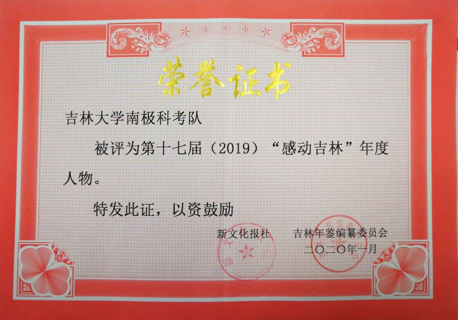 近日,第十七届(2019年度) “感动吉林”十大人物评选活动评选结果揭晓,由公司教师组成的“tyc41183太阳成南极科考队”团队凭借在中国南极科学考察活动中的优异表现和所取得的重大突破,以及吃苦耐劳、勇于奉献的敬业精神从众多候选人(团队)中脱颖而出,荣获此项殊荣。