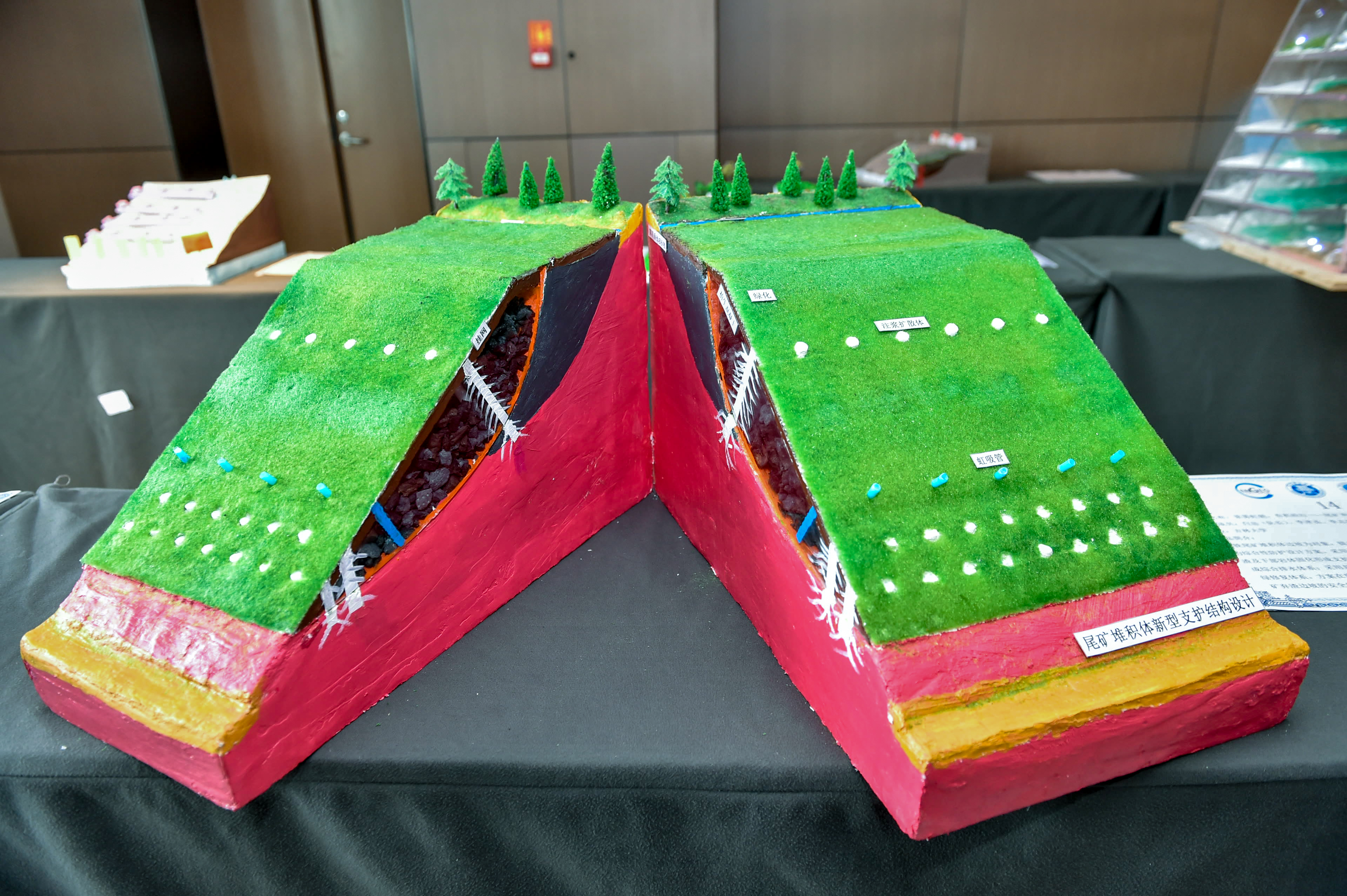 初赛阶段,在公司的关心支持下,工程地质系精心组织了参赛队伍的赛前选拔、培训和指导。通过大赛组委会评选,公司派出的两支参赛队伍,携“浆霁虹销,有机砼行—尾矿弃渣边坡生态防护技术”与“内外兼修,钢钎并济—膨胀土滑坡绿色防护技术”两部作品,双双入围决赛。