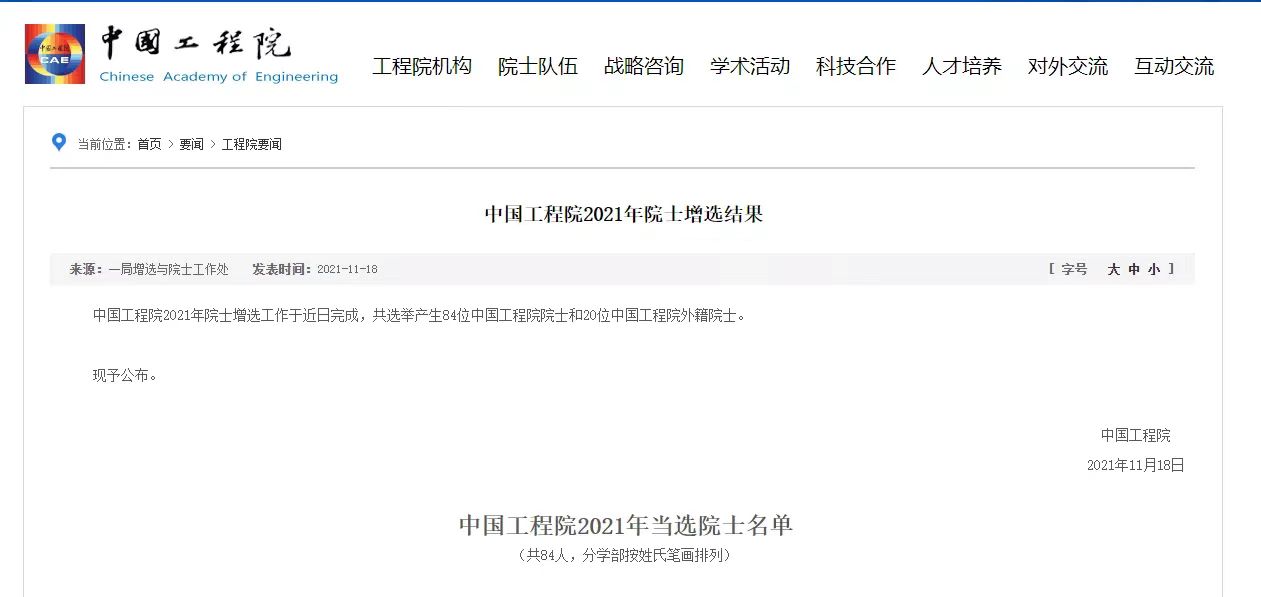11月18日,中国科公司、中国工程院2021年新当选院士结果公布,tyc41183太阳成原经理孙友宏教授当选中国工程院院士。