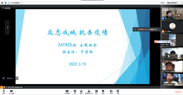 公司所有班主任响应公司号召,召开疫情防控主题教育先上班会,探讨实事问题、分享战疫故事、培养良好习惯、摸排员工情况,加强员工在疫情期间的自我管理及自我教育工作,提升同学们的战疫信心。