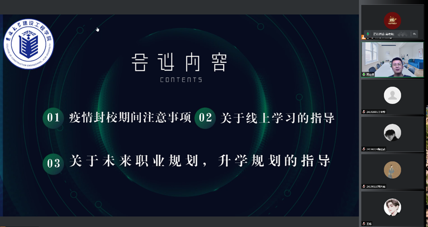 疫情按下了长春的暂停键,随之影响的是春招、是复试、是专业分流,同学们在本该迷茫的时候变得更加迷茫。这时,所有建工教师看到需求、听到了诉求,用自己所有的知识储备和经验为同学们上着一堂堂的人生规划课。