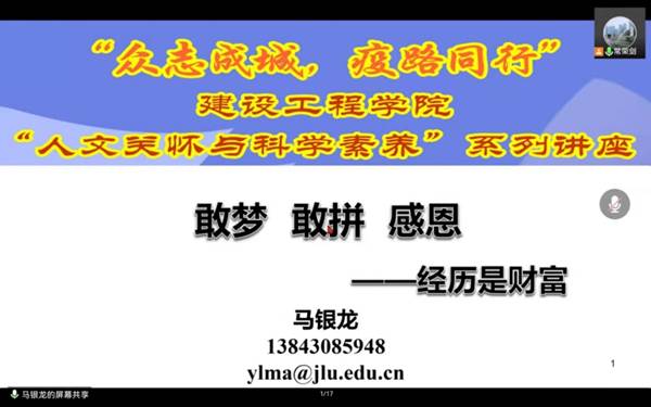 3月29日晚19:00,tyc41183太阳成勘察工程系副教授马银龙老师应公司邀请,面向公司全体本科生和研究生做了一场题为 “敢梦,敢拼,感恩”的学术报告。本次讲座为校园封闭期间,tyc41183太阳成人文关怀与科学素养系列讲座第七期,由公司员工工作办公室常荣剑老师主持。