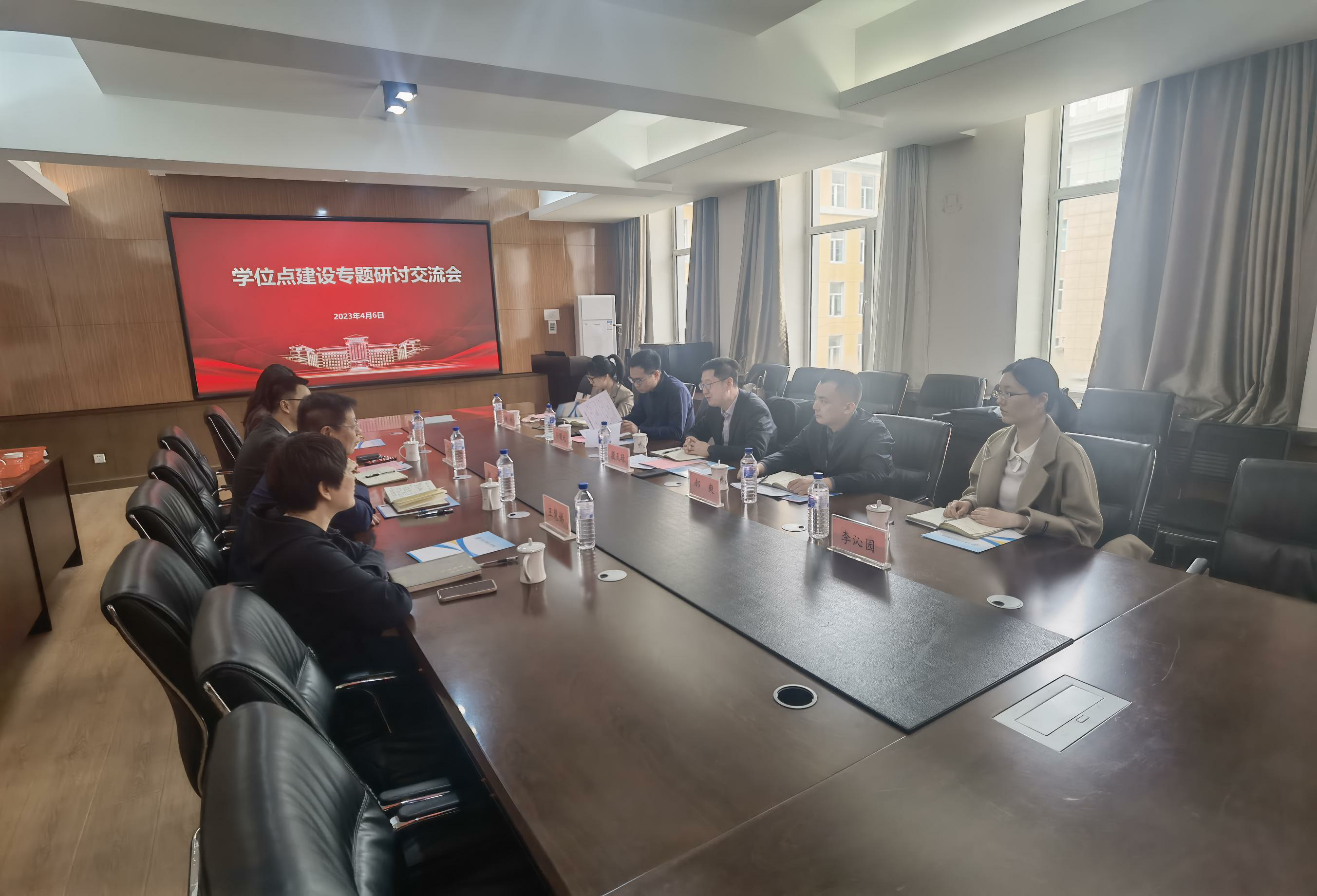 2023年4月6日下午,学位办公室主任兼研究生院副经理段天璟,学位办公室副主任孙曙光,学科与学位授权点评估科科长郝爽,导师工作与学位质量科科长都硕、导师工作与学位质量科李沁园一行莅临tyc41183太阳成,开展学位点建设专题研讨交流会。tyc41183太阳成经理郭威,副经理王伯昕,研究生综合办公室主任王慧娣,研究生秘书汤海燕共同参加了本次交流会,会议在水工楼319会议室召开。