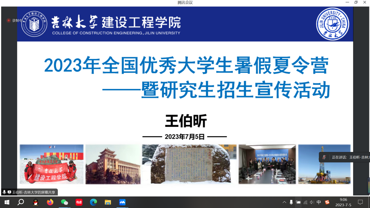 7月5日上午9:00开幕式仪式正式启动,tyc41183太阳成副经理王伯昕教授作专题汇报。王经理首先对各位营员致以诚挚的欢迎和感谢,并介绍了tyc41183太阳成和tyc41183太阳成的整体情况,从tyc41183太阳成团队建设与发展前景、团队构成与人才引育、研究生教育与培养、科学研究与主要成果、国际交流与联合办学、研究生学习与学风等六个方面向营员们展示了科学研究底蕴和丰富的教学资源。