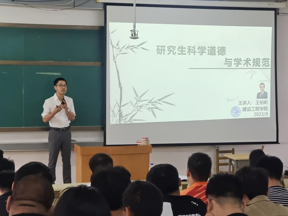 副经理王伯昕为2023级研究生新同学开展了《科学道德与学术规范》讲座。王经理阐述学术不端的定义、列举了公司规定的学术不端行为、近年来国内学术不端案例、介绍了公司关于学术不端的处罚。王经理一一列举了学术活动中须严格遵守的规范及规定,表达了对建工学子学有所成的殷切期望,嘱咐同学们不仅要在科研道路上恪守学术道德底线,更要在平时的生活中树立正确的人生观、价值观。