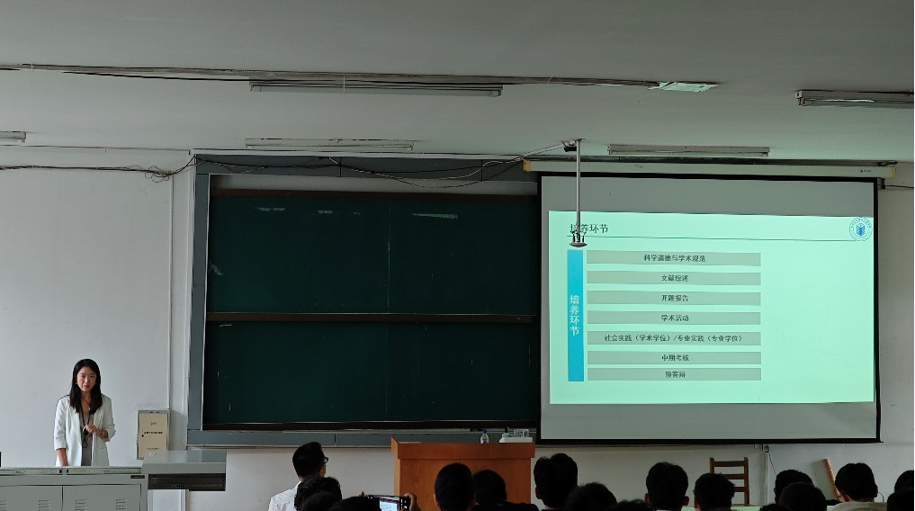 研究生综合管理办公室主任王慧娣老师和研究生思政秘书汤海燕老师就研究生日常管理规定、培养全过程、学位授予、奖助学贷、就业服务等事项对新生同学行了深入解读。两位老师的讲解内容详实、语言生动,不仅加深了新生对研究生阶段各项事务的理解,更激发了他们对未来学习生活的热情与期待。