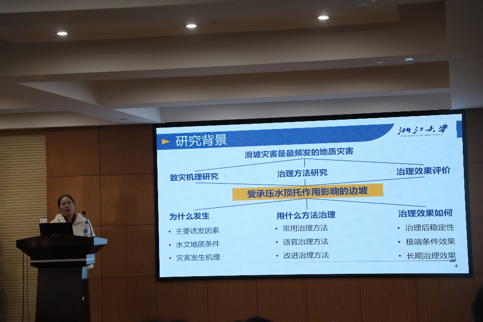 浙江大学孙红月教授作《承压水顶托作用诱发边坡变形破坏机理及防治方法》报告