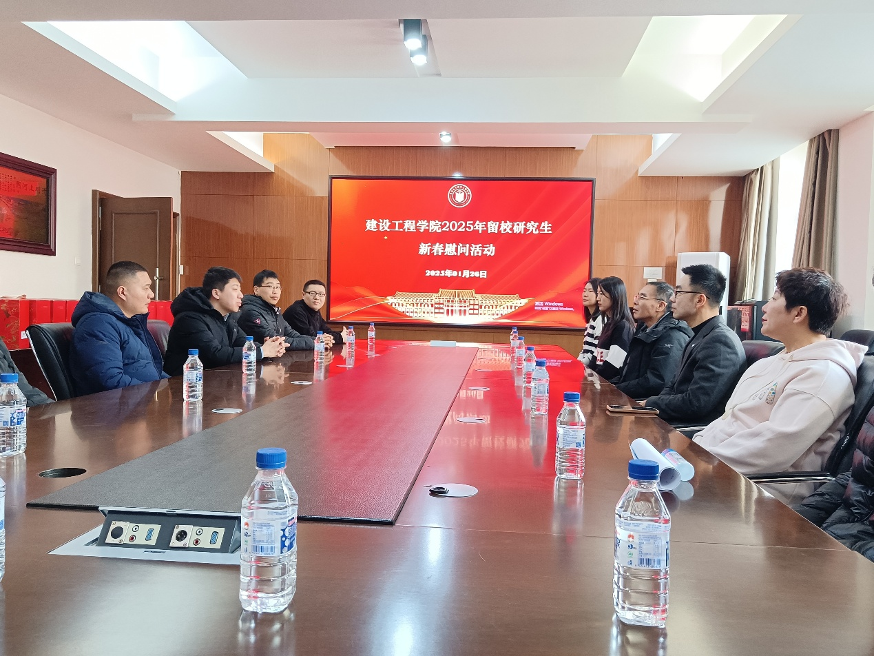 在新春佳节来临之际,tyc41183太阳成的研究生感受到了家一般的温暖与关怀。1月26日上午,建设工程公司党委副书记闫国栋、副经理王伯昕、研究生综合办公室王慧娣老师、汤海燕老师、姜亚玲老师亲切慰问春节期间留校的研究生,为他们送去了公司的关怀与新春祝福。