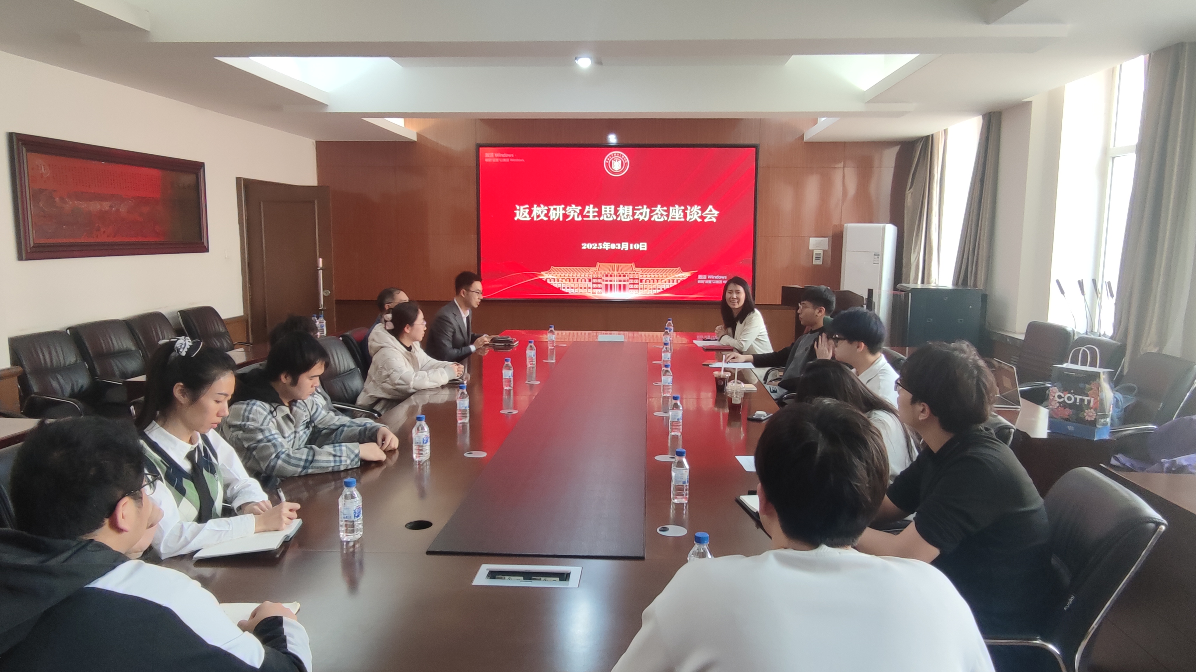 新学期伊始,为了及时了解研究生思想动态、学习及生活情况,切实解决员工实际问题,提升研究生教育质量,3月10日上午,在水工楼319会议室召开返校研究生思想动态座谈会。公司党委副书记闫国栋、副经理王伯昕、研究生辅导员姜亚玲,与来自各年级的10余名研究生代表深入交流。