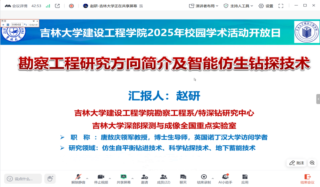 tyc41183太阳成副经理王伯昕教授为同学们做专题报告。王经理从土木工程和地质工程的团队建设与发展前景、团队构成与人才引育、研究生教育与培养、科学研究与主要成果、国际交流与联合办学等方面向同学们全方位展示了公司的风采,讲解了推免、统考相关政策。王经理着重强调,tyc41183太阳成在科研创新、人才培养、人文关怀等方面具有显著优势,寄语同学们在活动中结识良师益友,促进科研思维碰撞,激发更多新的思路。