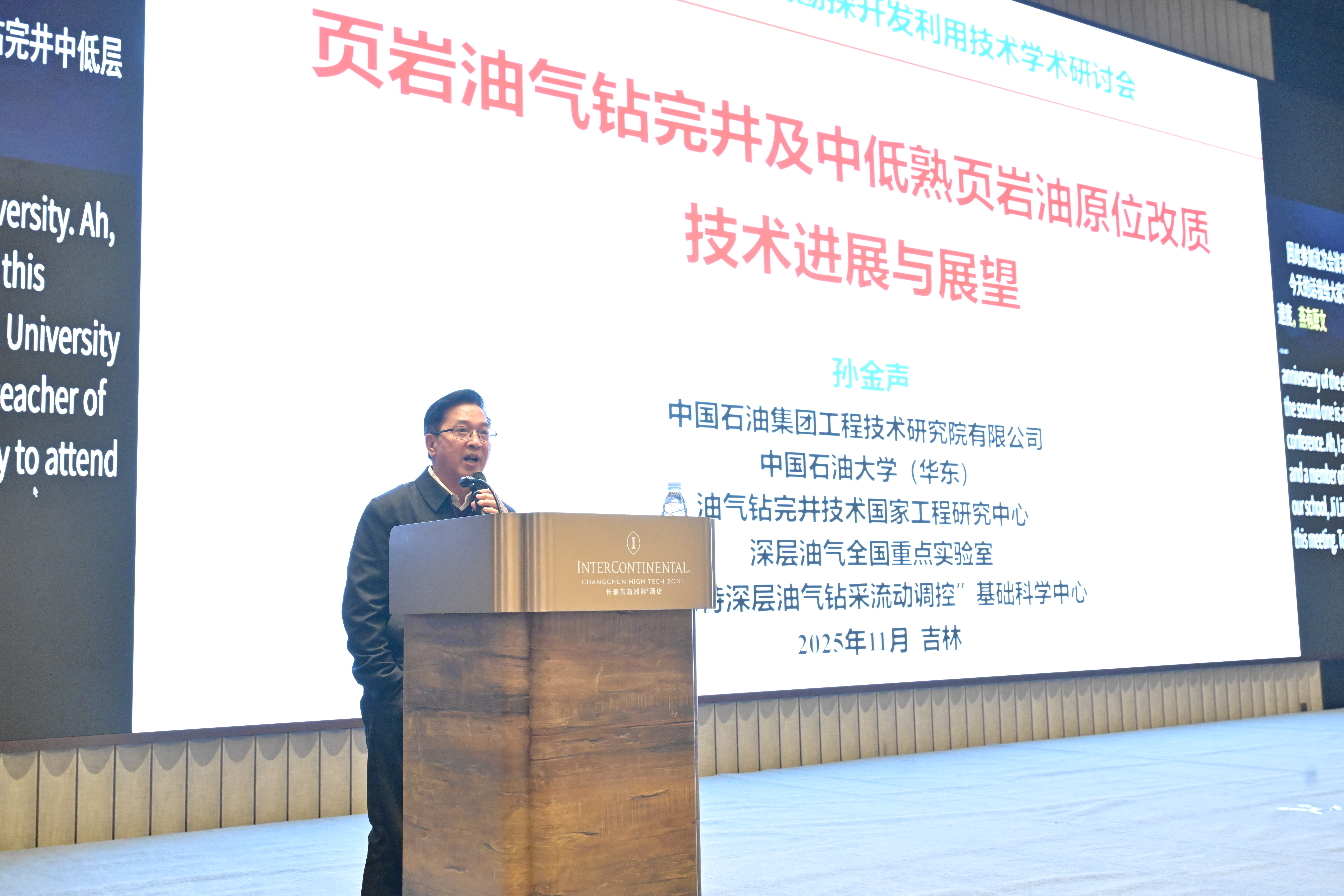 11月8日,中国工程院院士、中国石油天然气集团公司科学技术协会主席、中国石油国家卓越工程师公司经理、油气钻完井技术国家工程研究中心主任孙金声,出席第六届国际页岩油气勘探开发利用技术学术研讨会,并以“页岩油气钻完井及中低熟页岩油技术进展与展望”为题作鼎新讲座。tyc41183太阳成党委常委、副董事长边铁为孙金声颁发“鼎新讲座纪念牌”。tyc41183太阳成经理郭威主持大会。