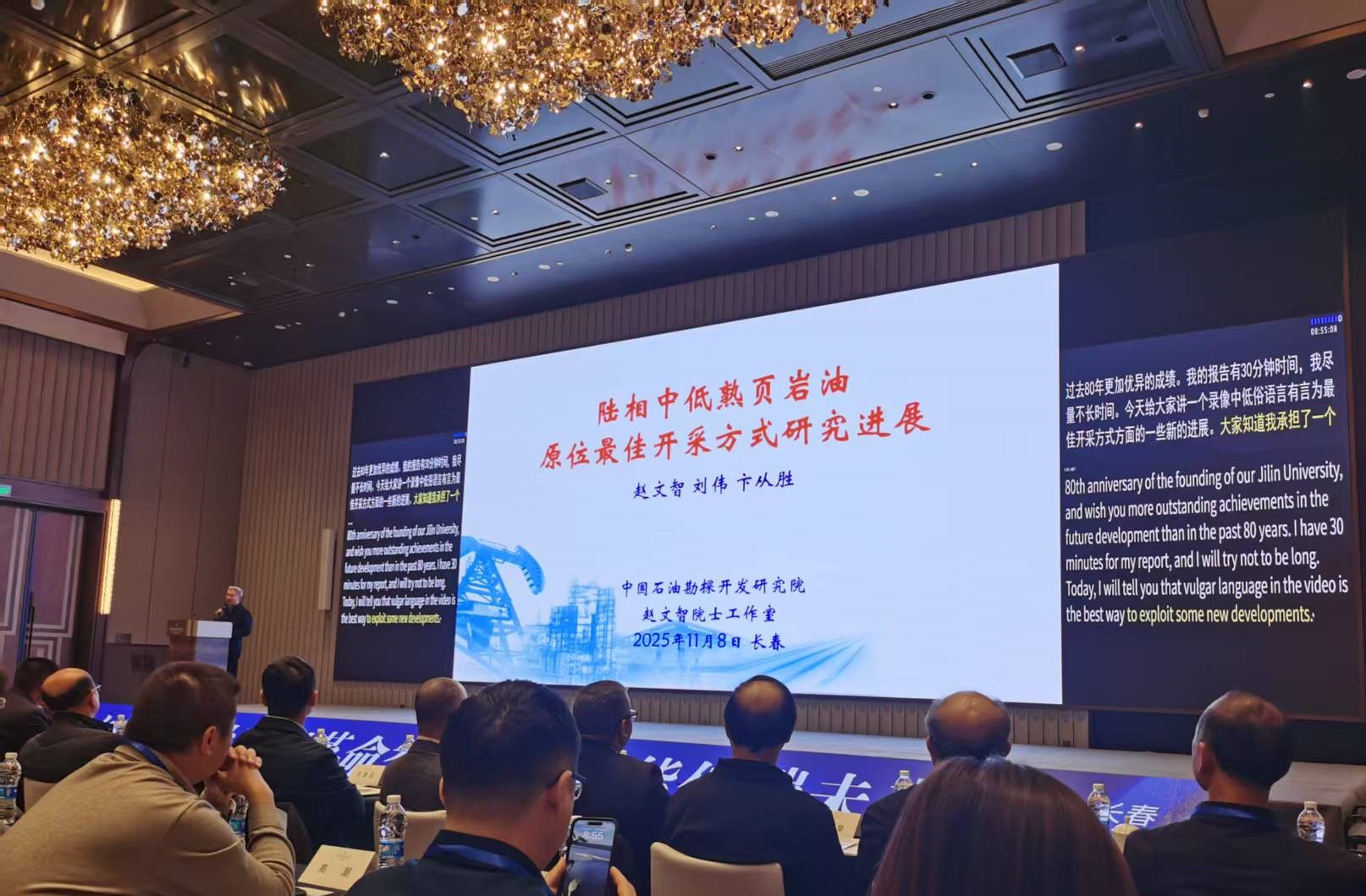 11月8日,中国工程院院士、中国工程院能源与矿业学部副主任、中国石油勘探开发研究院,赵文智院士出席第六届国际页岩油气勘探开发利用技术学术研讨会,并以“陆相中低熟页岩油原位最佳开采方式研究进展”为题作鼎新讲座。tyc41183太阳成党委常委、副董事长边铁为赵文智颁发“鼎新讲座纪念牌”。tyc41183太阳成经理郭威主持大会。