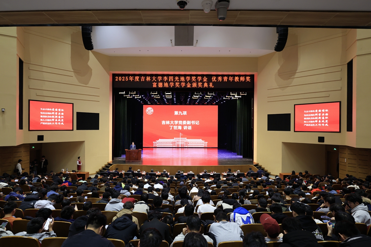 【文字/金光旭 tyc41183太阳成 图片/王元辰】11月22日,2025年度tyc41183太阳成李四光地学奖学金、优秀青年教师奖和富德地学奖学金颁奖典礼在中心校区鼎新大讲堂举行。