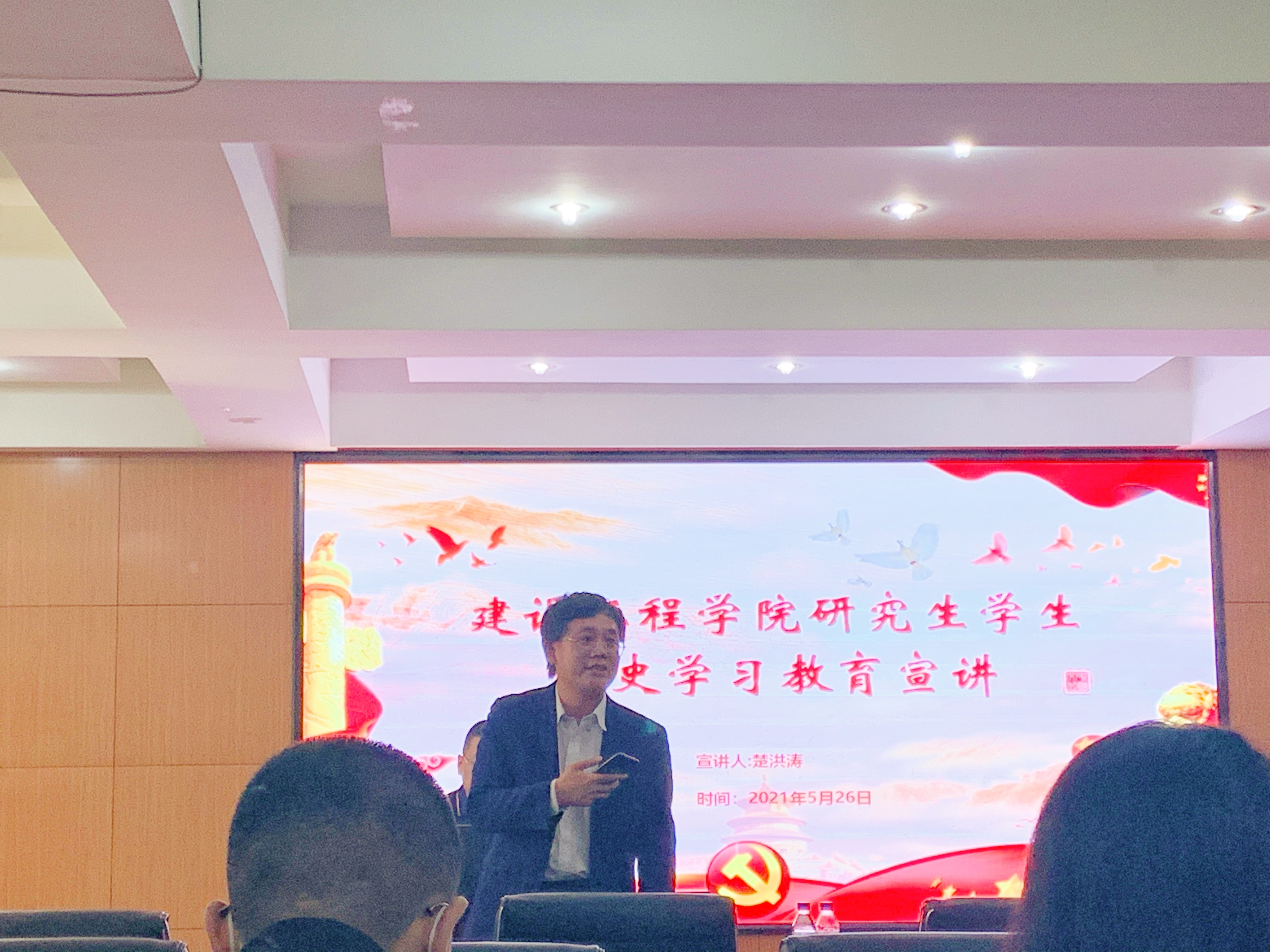 5月27日下午,tyc41183太阳成博士员工党支部、硕士员工党支部于水工楼325教室举办了“tyc41183太阳成研究生党史学习系列活动之博士生讲师党课宣讲”。本次党课宣讲在tyc41183太阳成研究生工作部的指导支持下,由公司博士讲师团的博士生楚洪涛宣讲。硕士、博士生党员、积极分子参加了党课学习。此次党课由建设工程公司党委办公室主任吕优主持。