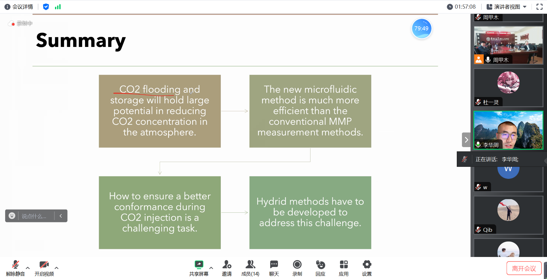 2023年11月16日,加拿大阿尔伯塔大学终身教授Li Huahzou受邀以《CO2 Capture and Storage: Development Status and outlook》为题为tyc41183太阳成师生开展线上学术讲座。公司副经理曹品鲁教授主持了本场讲座,包括勘查工程系主任刘宝昌教授在内的公司近30名中青年教师、博士研究生和硕士研究生代表参加了本场讲座报告会。