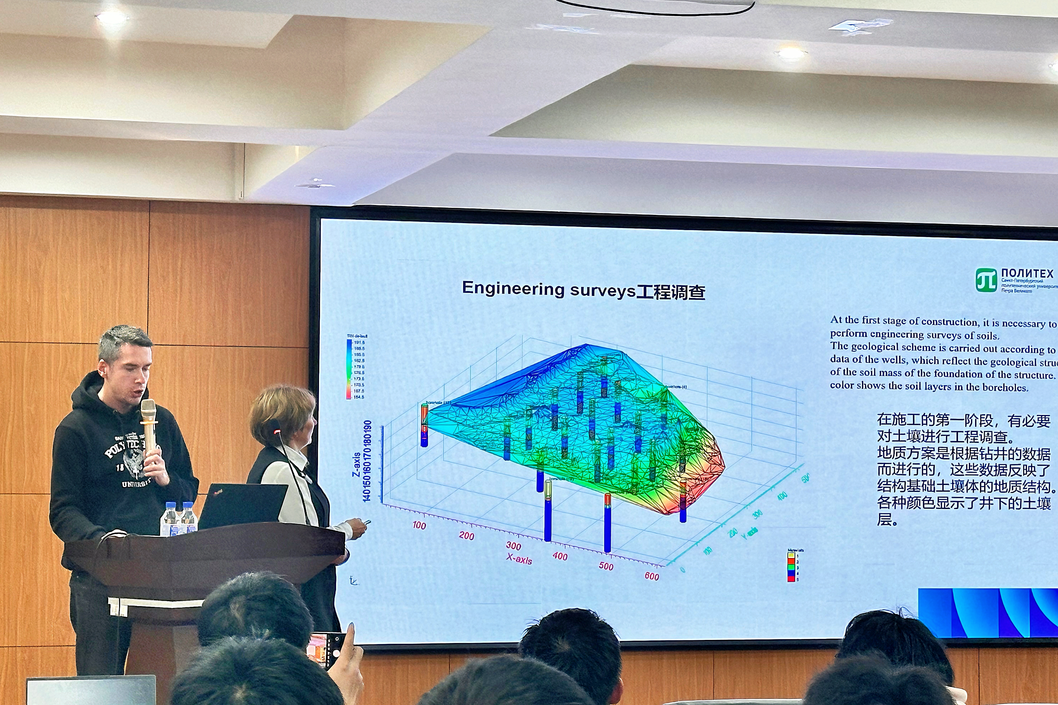 在分论坛活动中,三位俄罗斯专家分别就俄罗斯永久冻土区域的建筑结构数学建模、数字孪生技术在工业企业中的革新应用、有限元方法在水力发电坝结构设计中的应用等领域向公司师生分享了知识与经验。报告结束后,现场的师生们表现出极高的积极性,与专家们展开了热烈而深入的互动交流,针对报告中的技术细节、实践应用以及未来发展趋势等方面提出了诸多有价值的问题,专家们也耐心细致地给予了回答,进一步加深了公司师生对专业知识的理解与探讨。