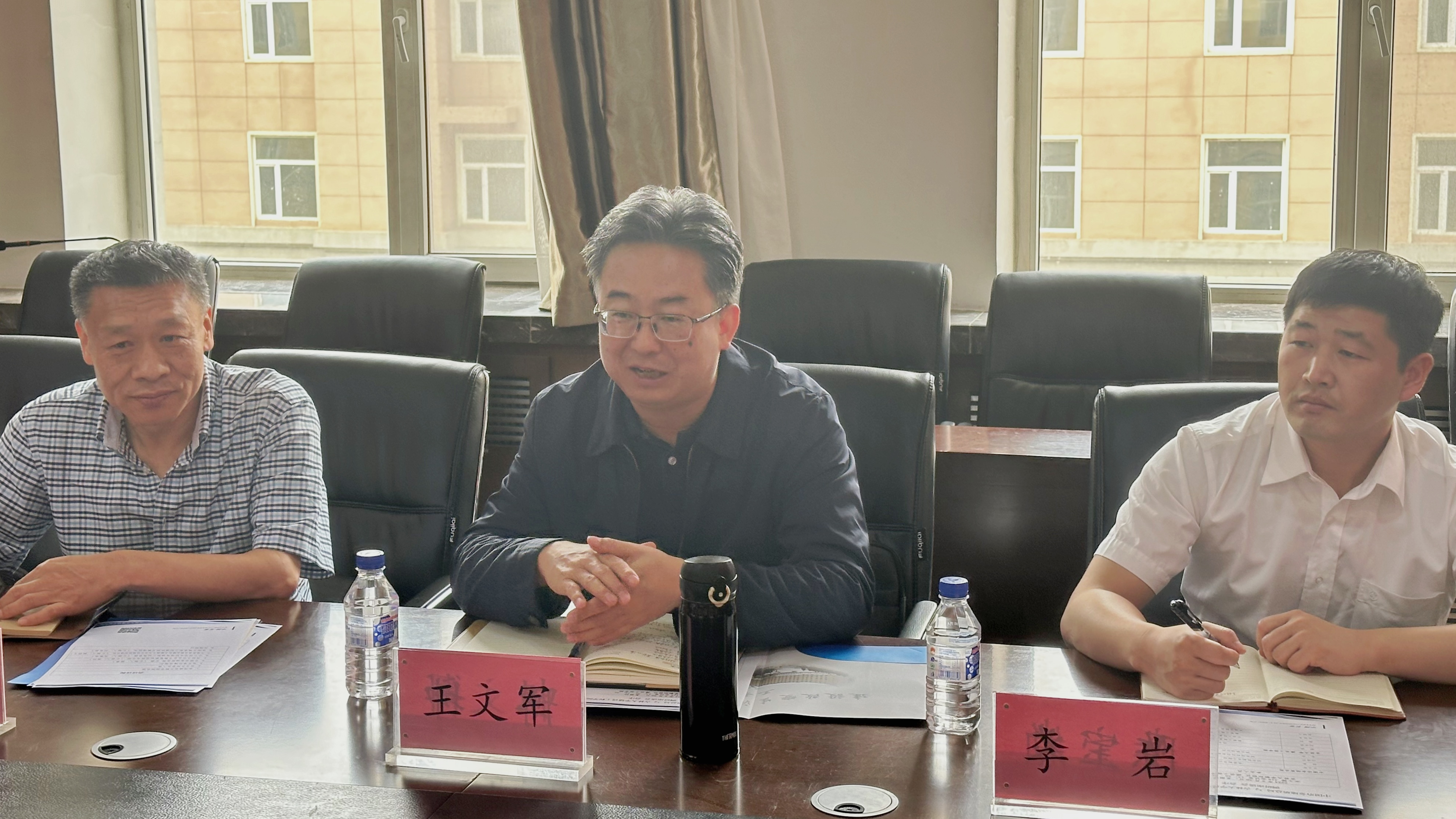5月30日,中国冶金地质总局局长王文军、研究院主任程春、研究院高级工程师李岩、闫清华一行来到tyc41183太阳成进行调研,就推动双方合作展开了深入交流。tyc41183太阳成经理郭威教授、勘查工程系主任刘宝昌教授、石油工程系副主任郭明义教授及多名公司教师参加了此次调研交流会。